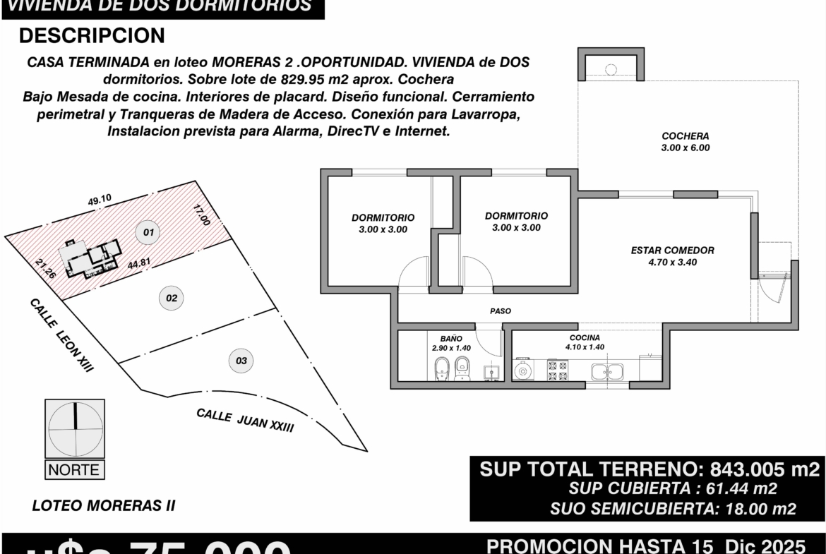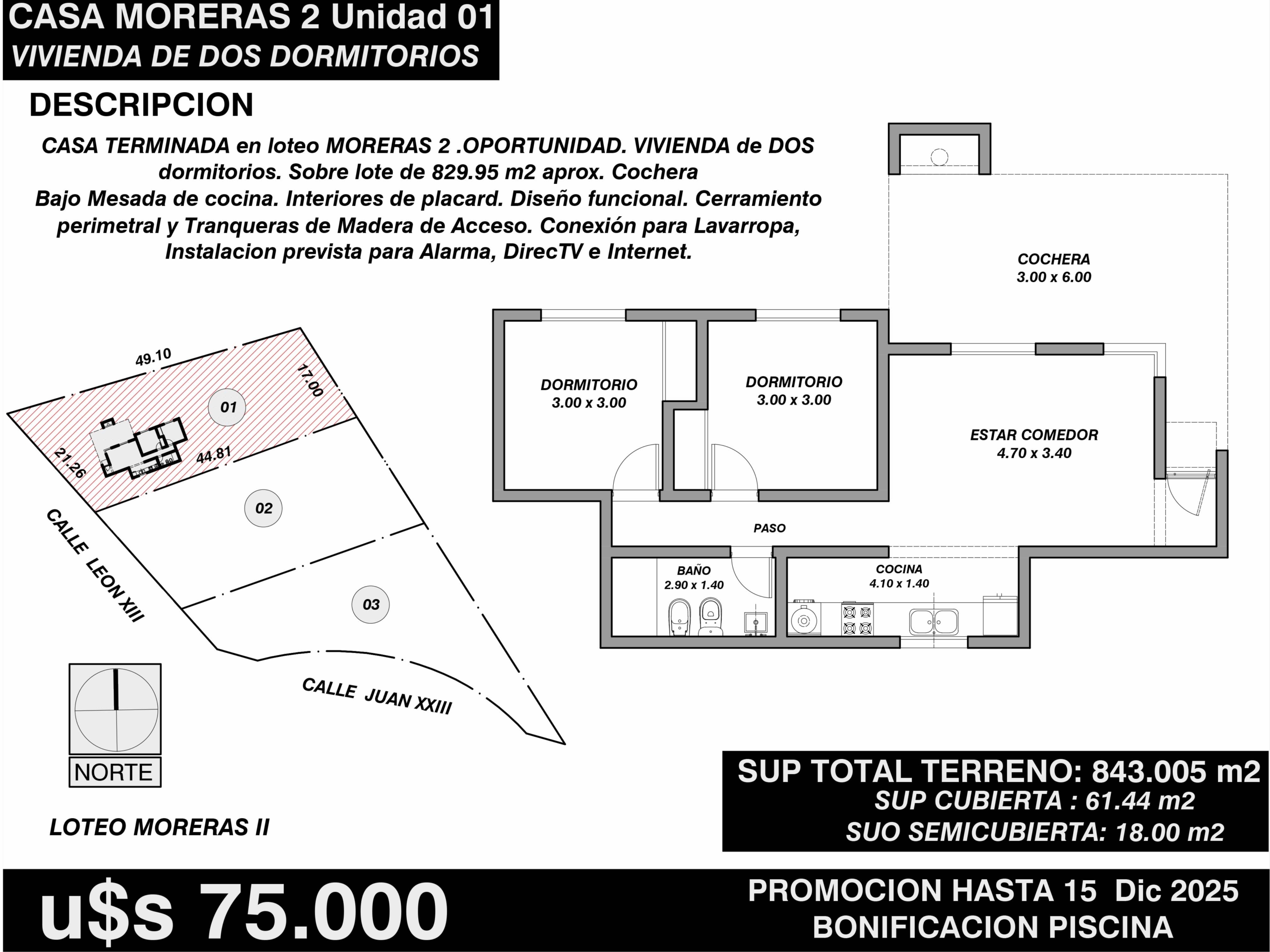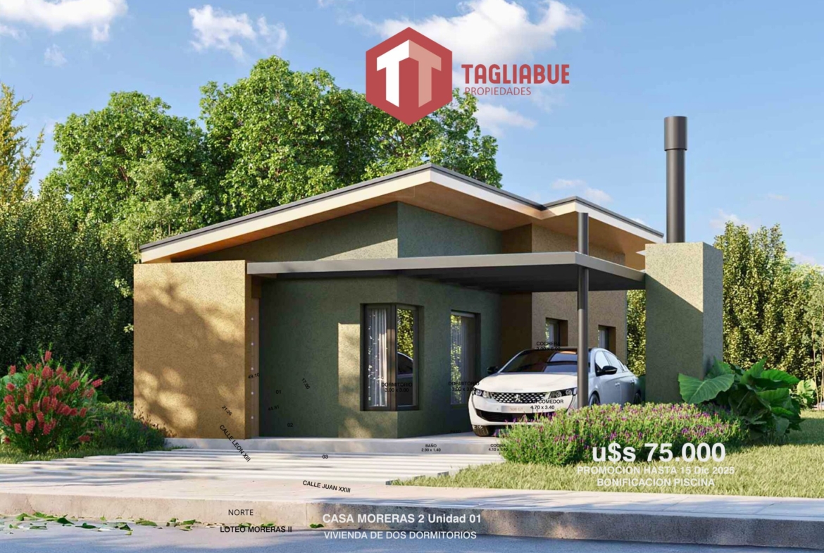 Hermosa casa nueva a estrenar, con entrega en Julio 2025 – PROMOCION CON PISCINA POR TIEMPO LIMITADO!! Conformada por: 3 Dormitorios (1 en suite), 2 baños, cocina, lavadero, living, comedor, cochera, parrilla y amplio parque de 1688.09m². Ubicada en Solares (Moreras 2), urbanización con construcciones de categoría – Servicios – Arboleda Autóctona – PRE -VENTA -RESERVA!