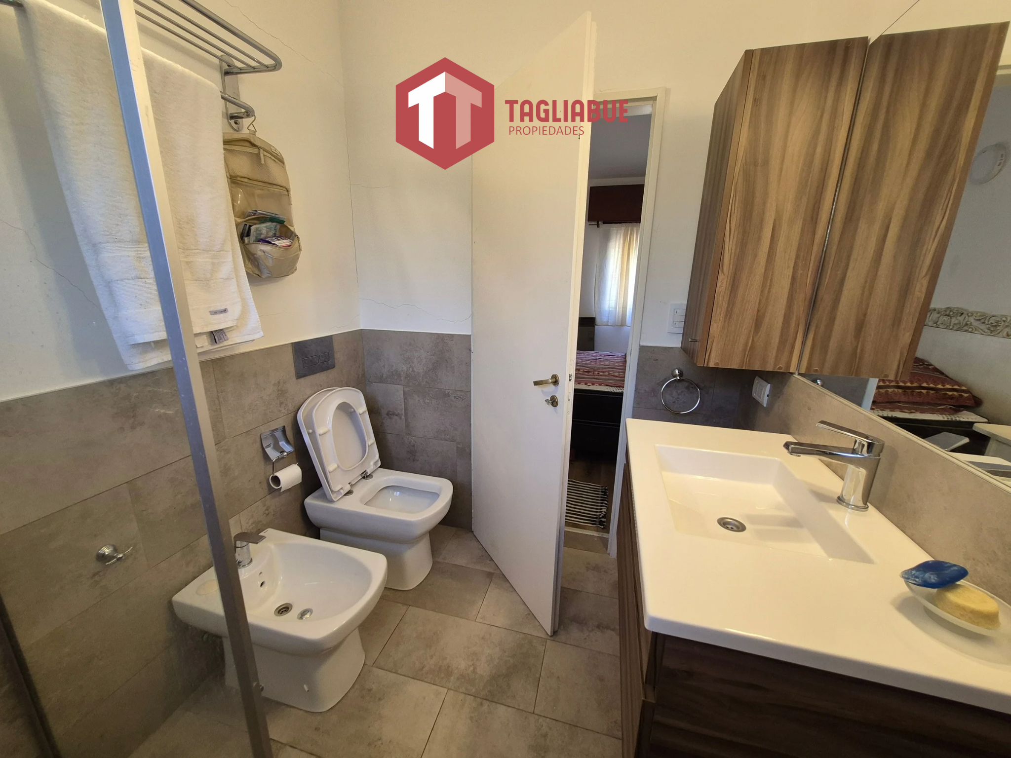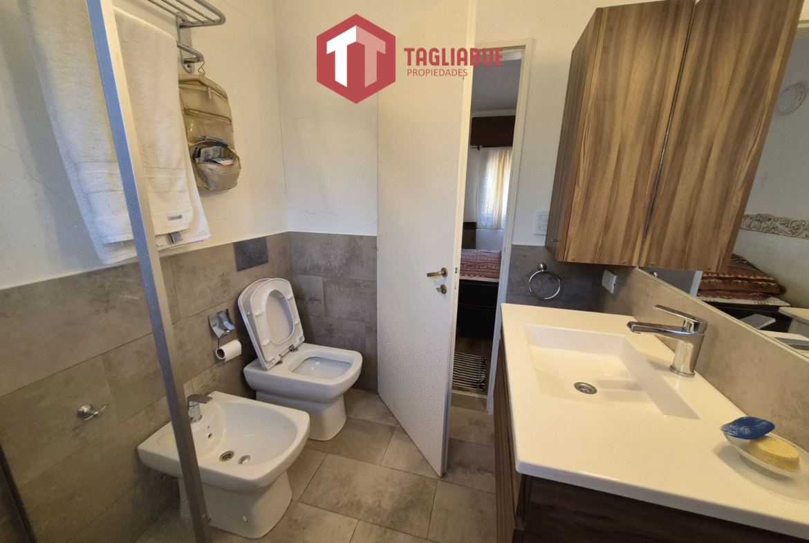Cuenta con dos dormitorios, dos baños (uno en suite), cocina semi integrada, y un amplio living-comedor con salida a galería con parrilla, ideal para disfrutar del aire serrano.