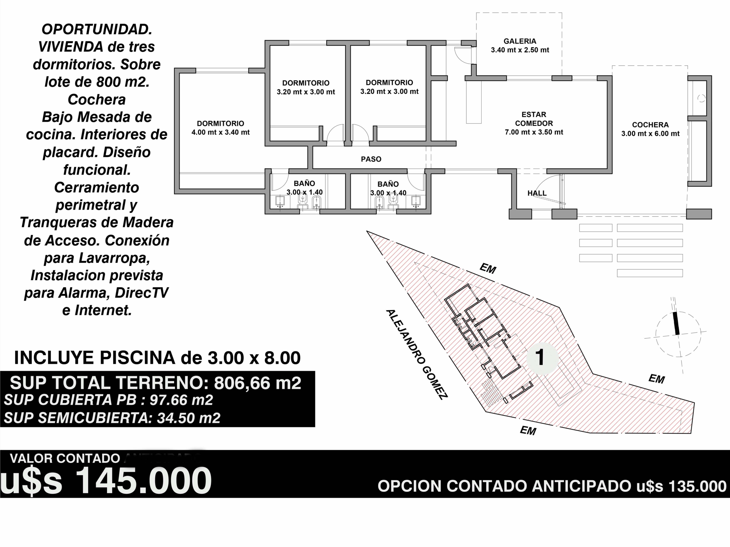 Imaginá vivir en esta acogedora casa, a solo pasos del centro, en un barrio sereno y lleno de vida. Sobre un amplio lote de 800 m², esta casa ofrece 97,66 m² cubiertos y 34,50 m² semicubiertos. Con 3 dormitorios, 2 baños (uno en suite), un cálido estar-comedor, galería, hall de recepción, cochera y una piscina donde compartir momentos inolvidables, cada rincón invita a sentirse en casa. ¡No dejes pasar esta oportunidad de empezar una nueva historia aquí! Financiacion – Aprovecha los valores de PRE_VENTA. Consultanos!